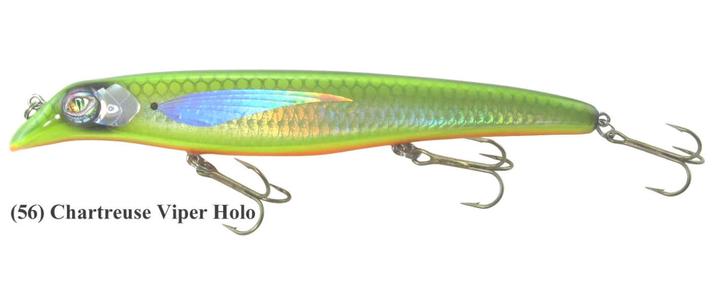 10" Sand Cat: Sleek aerodynamic body style combined with strategically placed weight makes the 10" Sand Cat an ideal choice for late summer and fall trophy hunters. Lure performs best with long, sweeping pulls of the rod which gets it down in the 2 to 4' range. Inserted lexan lip protects finish when making contact with rocky bottoms and enhances the action. Extra heavy duty hooks and hardware makes this one tough bait that will hold up to toothy predators wherever they swim. Also makes for an excellent troll bait with a natural swim action.