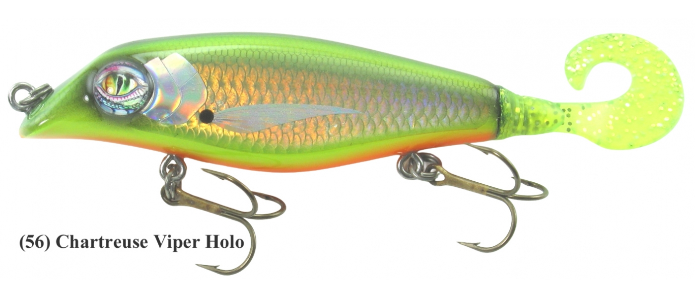 7" Sand Cat™ Live Action Tail: This new 7" size combines the famous Sand Cat dive/rise wobble with the added attraction of a soft curly grub tail that's securely attached onto a coil spring in the lure body. It performs best with short downward jerks thats perfect for working weed tops, shallow structure wood and boulders in the 1-3' range. You can also use a straight retrieve or troll it for a natural swim like action. Excellent boatside figure 8 lure.